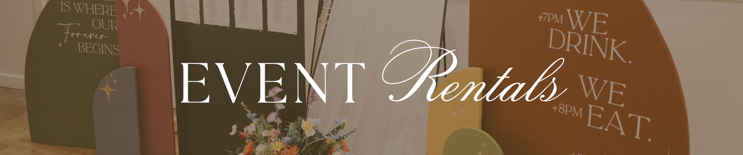 From statement backdrops to whimsical touches, our event rental collection helps you create a cohesive, beautiful space — without the stress of sourcing everything yourself.