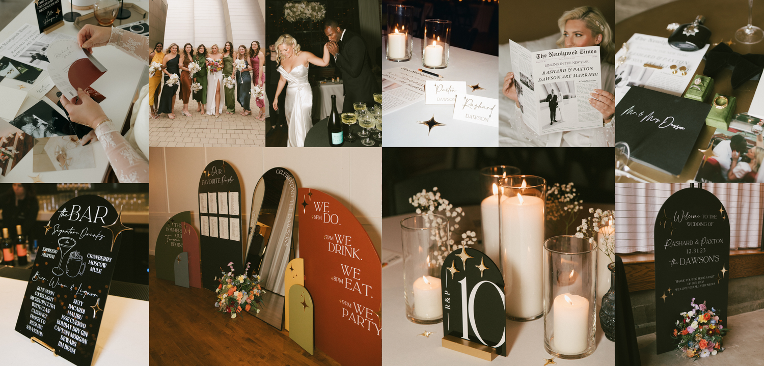 Elevate your celebration with our comprehensive Event Design Suite. Choose from packages offering 5, 10, or 15 custom-designed items, or opt for the All-Inclusive Event Design Suite. We provide everything from invitations and welcome signs to personalized decor, ensuring a beautifully styled event that reflects your unique vision and style.