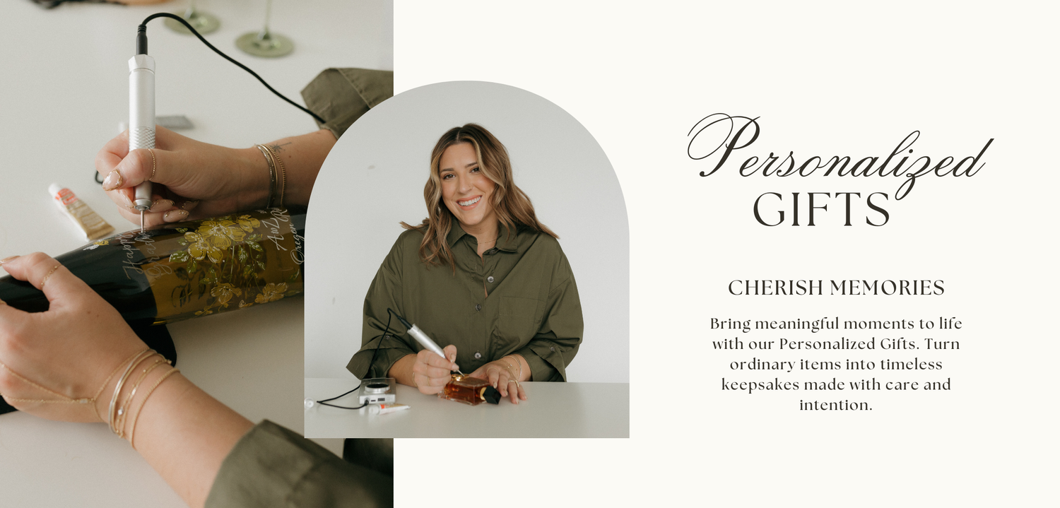 Personalized gifts are thoughtfully crafted in the studio and designed for meaningful moments, milestones, and intentional gifting. Perfect for wedding details and gifts, client gifting, holidays, birthdays, anniversaries, and other special occasions. Please complete the form below to inquire about availability and details.
