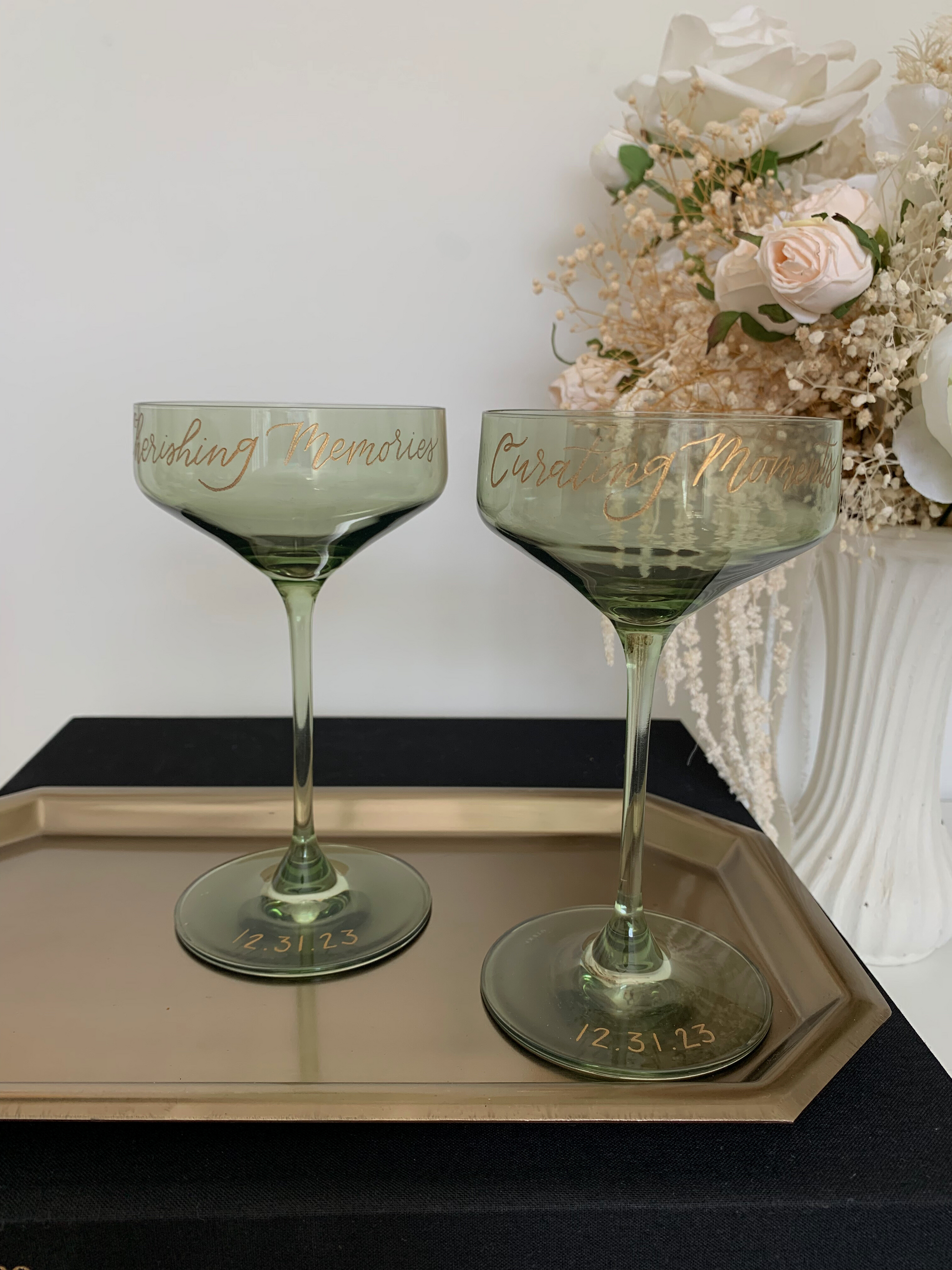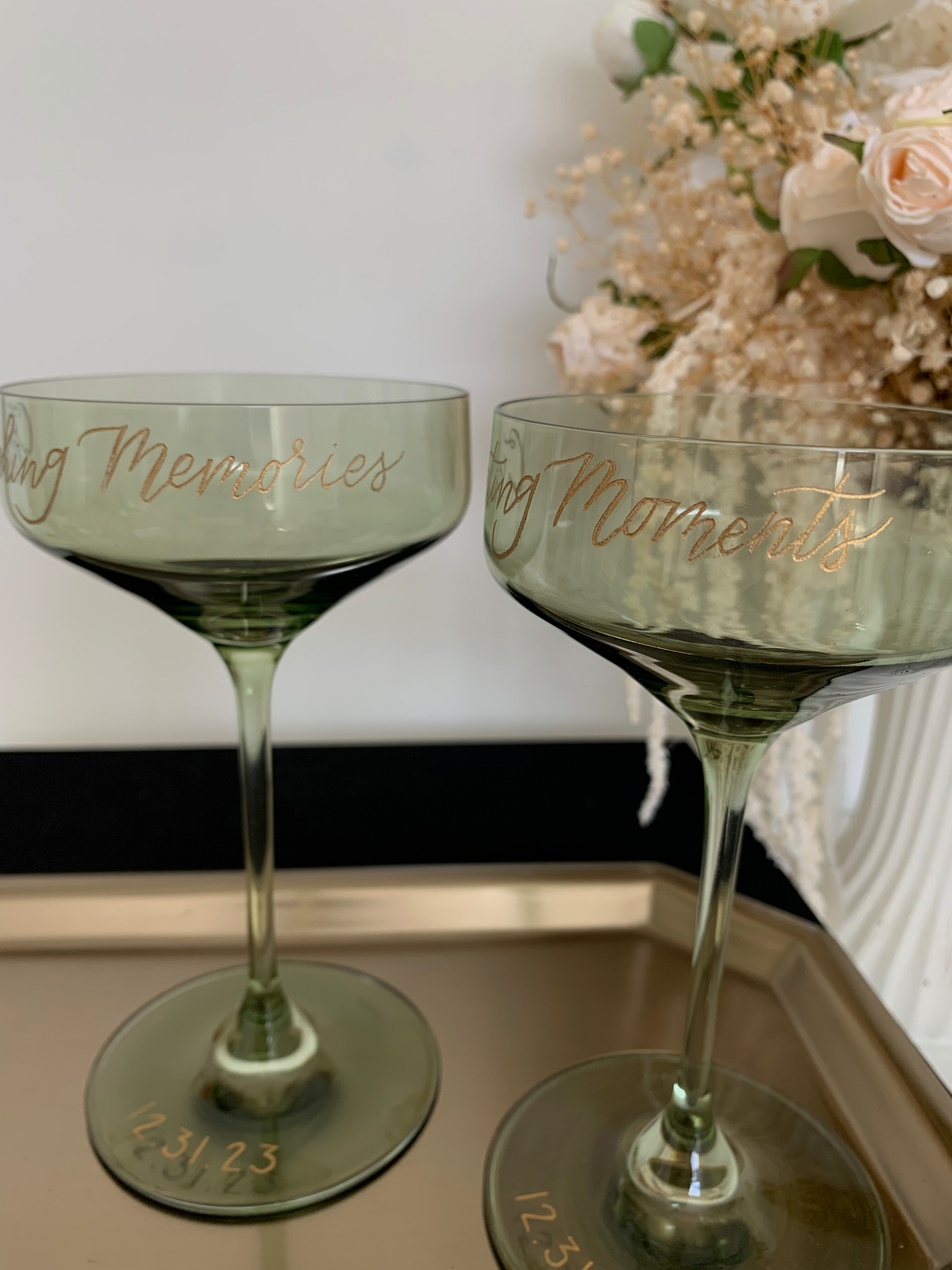 We can engrave on a variety of glass styles, including wine glasses, champagne glasses, whiskey tumblers, beer mugs, shot glasses and more.Personalize them with names, dates, or special messages to create a one-of-a-kind accessory that reflects your style. The handcrafted engraving process guarantees a unique result for every piece, making it a cherished addition to any bar or kitchen.